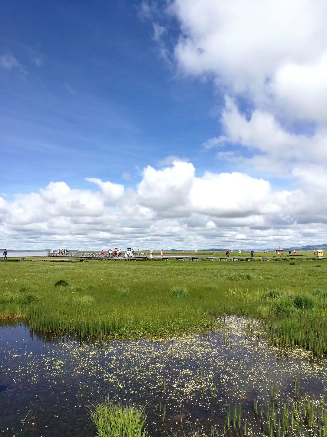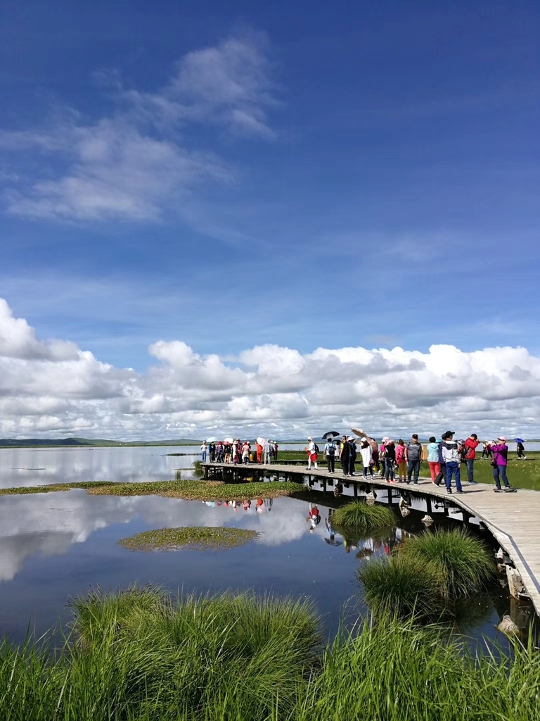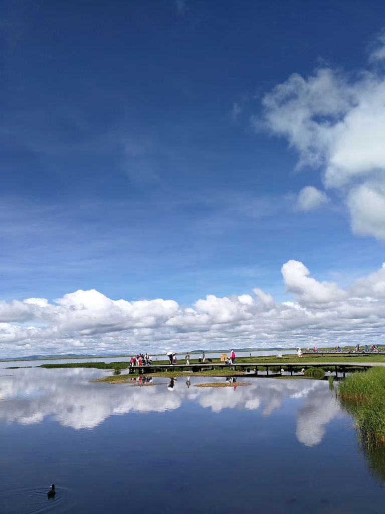 我们去的那天预报有小雨,但是去时却仍是蓝天白云,艳阳高照。无垠的花湖独特旖旎的自然风光美得令人心醉!