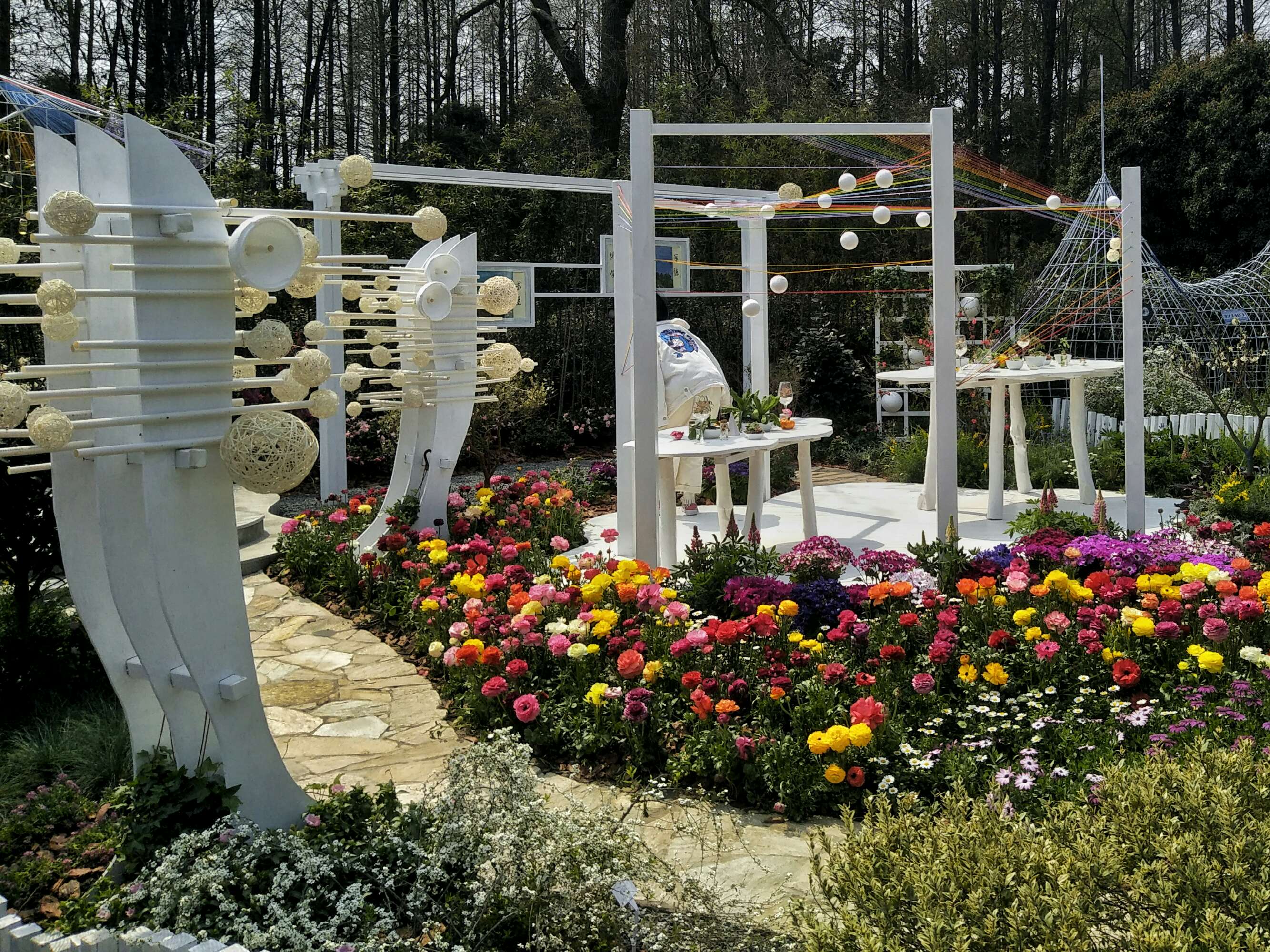 植物园当然是春天或者秋天前往最好了,春天有姹紫嫣红的各类花卉,特别是牡丹花的绽放,秋天有菊花的五彩缤纷,,枫叶的翩翩起舞。前几天趁着天气晴好,我来到了上海植物园,这个位于徐汇区西南部的植物园,前身为龙华苗圃,是一个以植物引种驯化和展示、园艺研究及科普教育为主的综合性植物园。这次植物园的春季花展,吸引了国内外的无数游客,园区各种树木花卉以及借助楼梯,五线谱等搭配而成的趣味造型,风格独特迥异,深受大家的喜爱,并频频按下手机摁钮或者启用长枪短炮来记录下这个美妙时光。当然,春天的植物园里,娇艳欲滴的樱花,粉嫩嫩的垂丝海棠,紫色浪漫的郁金香,艳红夺目的迎春花,黄色向上的油菜花,纯白色的玉兰花,朵朵盛开的牡丹花,都呈现出万紫千红,诗情画意的春天色彩。
