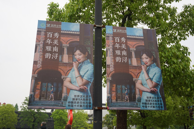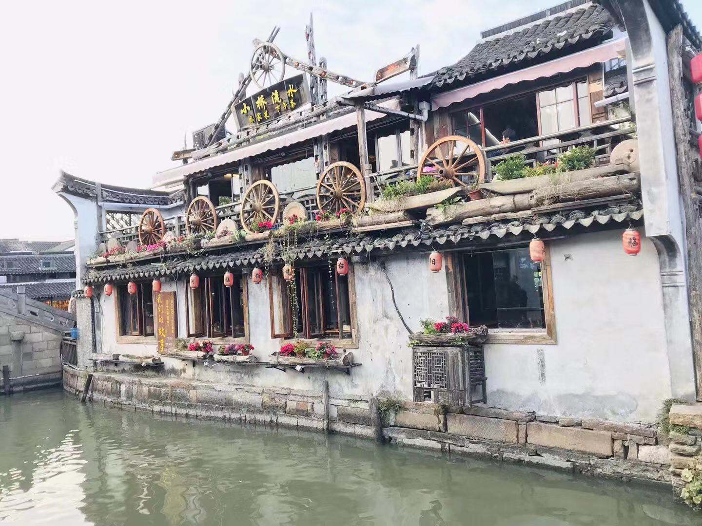 我们一行人是步行参观,线路为:景区入口——乌镇大剧院——术心美术馆¬——宏源泰号染坊——喜庆堂——放生桥——茅盾纪念堂——女红街——迁善桥——乌镇邮局——后市弄——如意桥——白莲寺——酒吧街——文昌阁——南塘桥——水剧场——丝作街——乌将军庙——枕水度假酒店——风雨长廊——景区出口,这条线路相当于只游览了半个乌镇西栅景区,可见西栅景区面积之大。