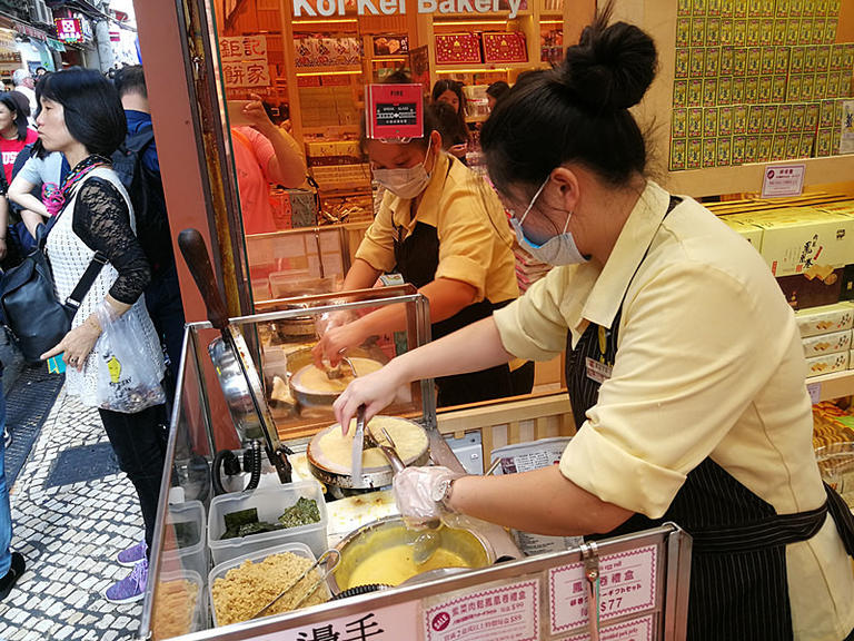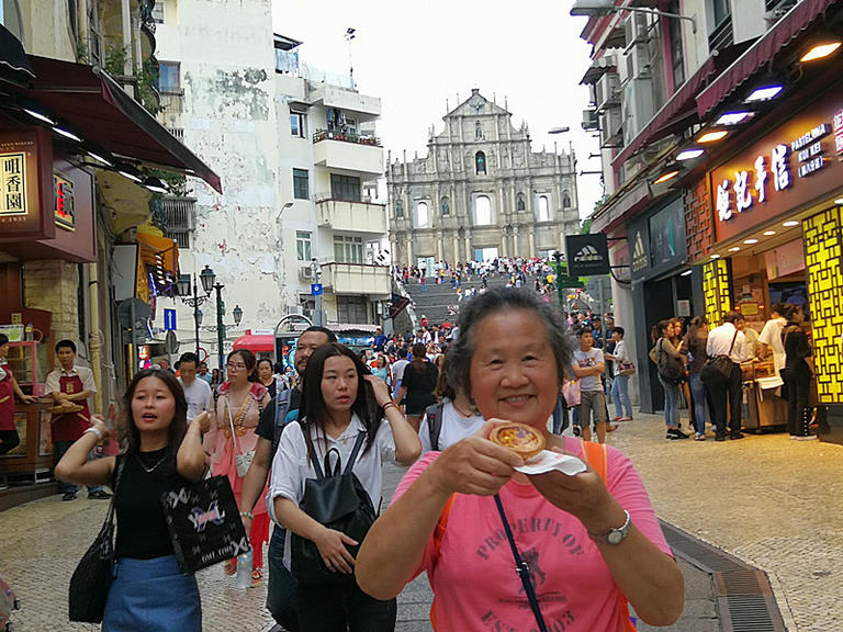 大三巴街上最多的小吃,也是最受欢迎的小吃,就是各种肉干和各种手工制作的糕饼,甜点店也不少。我在这里买了葡挞(儿时爱吃的东西总也忘不了),在大三巴吃葡挞感觉不一样哦。