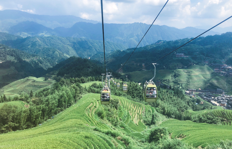 龙脊梯田夏天秋天的景色非常美,自己爬上去不太累,如果体力有限可乘坐索道。