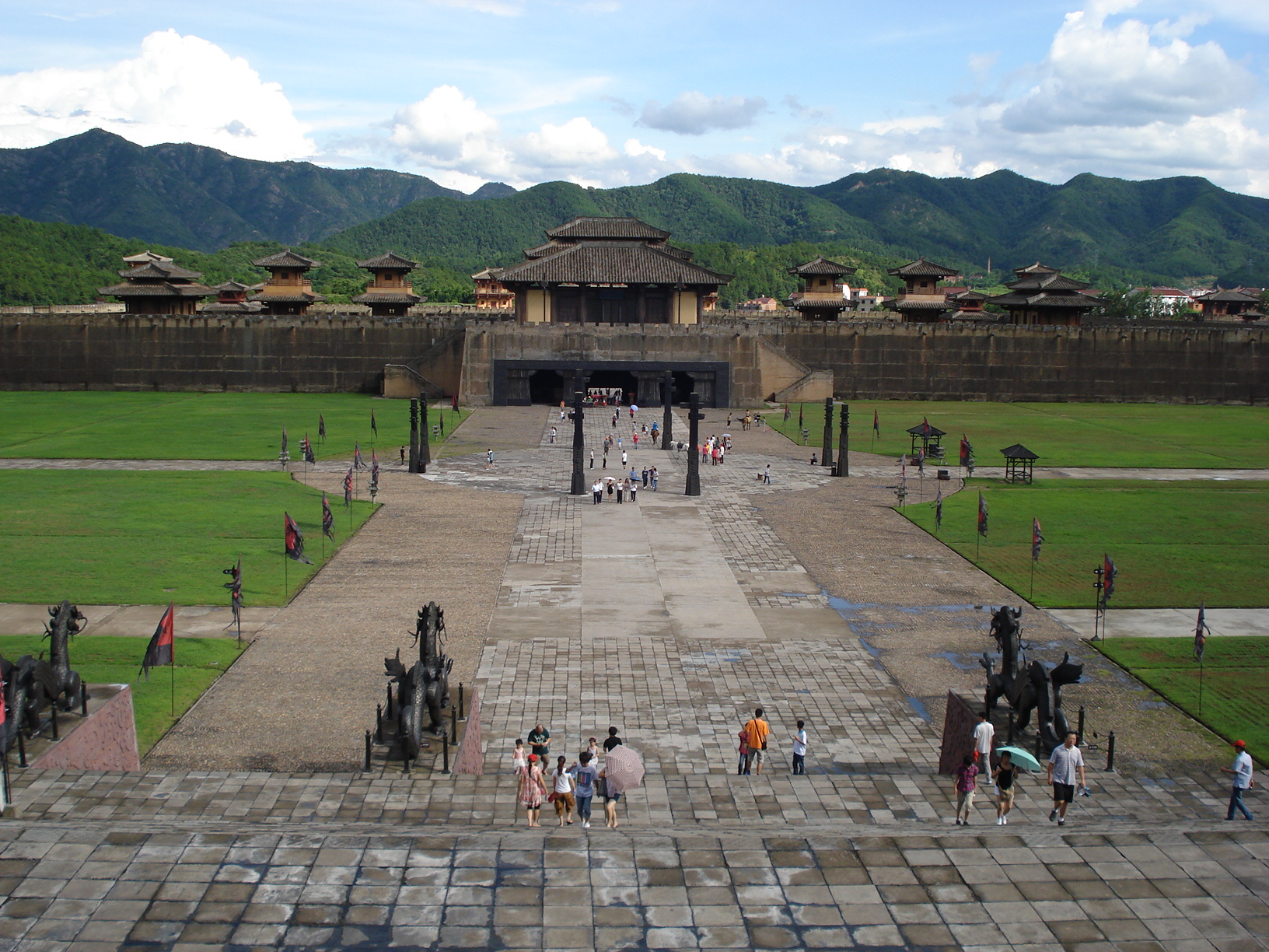 我当年去横店影视城的时候,一天去了3个景点,分别是明清宫苑,秦王宫和清明上河图。首先去的是明清宫苑,面积很大,毕竟是仿造故宫的,建筑也很雄伟,很多清朝宫廷剧都是在明清宫苑拍摄的,明清宫苑内还能看八旗战马表演,景区内有租四轮车的。横店影视城秦王宫景区是1997年为著名导演陈凯歌拍摄历史巨片《荆柯刺秦王》而建。站在秦皇宫入口处,仿佛自己回到了秦朝,气势磅礴的感觉围绕在身边。秦皇宫前的区域非常具有帝王家的气势,电视剧《寻秦记》中,林峰扮演的秦始皇在此登基。景区内也是可以追寻很多电视剧的场景。清明上河图景区是拍摄古代街区的景点,我们去的时候还有群演在拍戏呢。