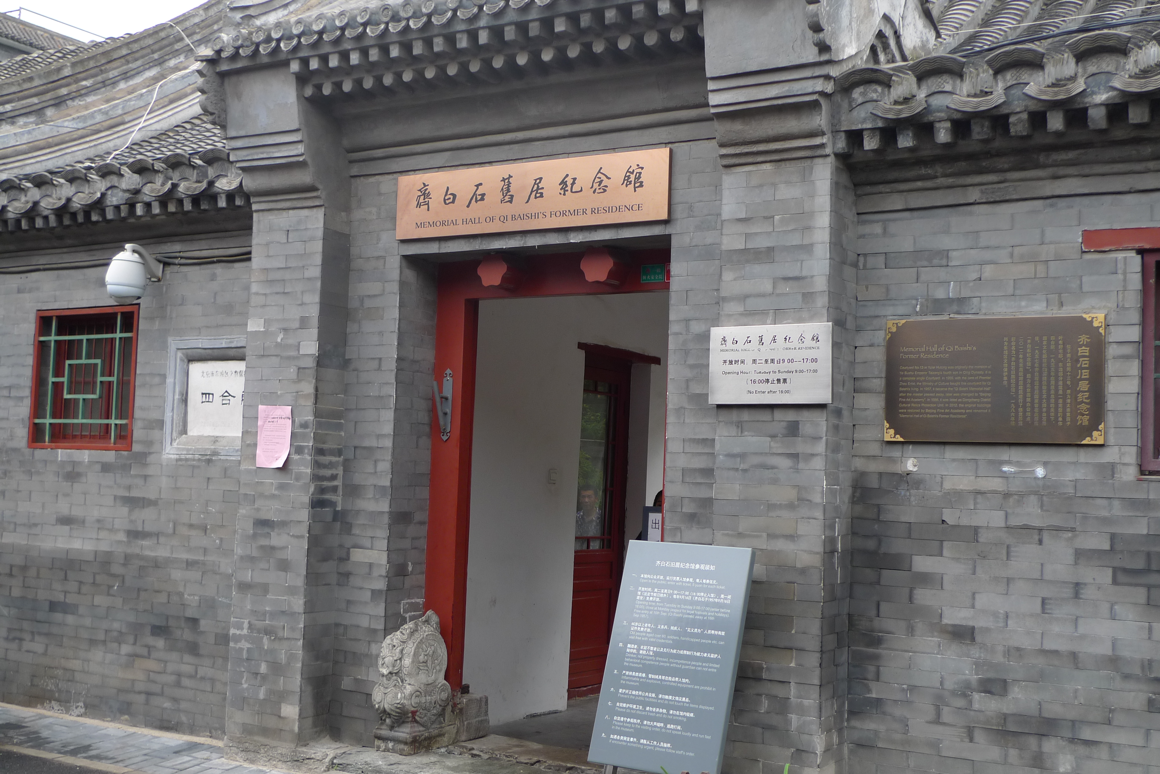 南锣鼓巷西面的雨儿胡同13号齐白石旧居纪念馆:院子很宽敞且保护完好,透出老宅门的原汁原味。院内有齐白石雕塑。