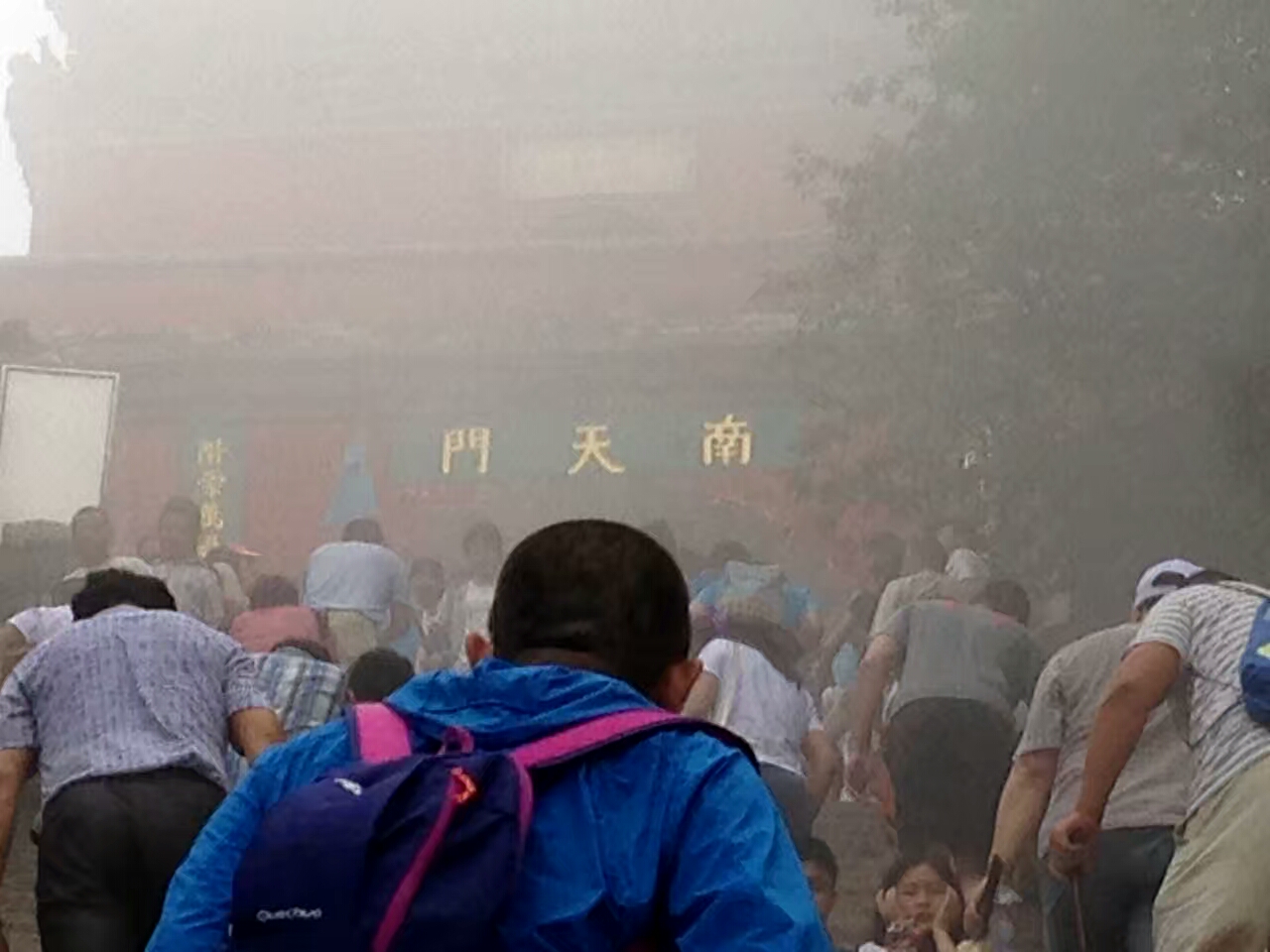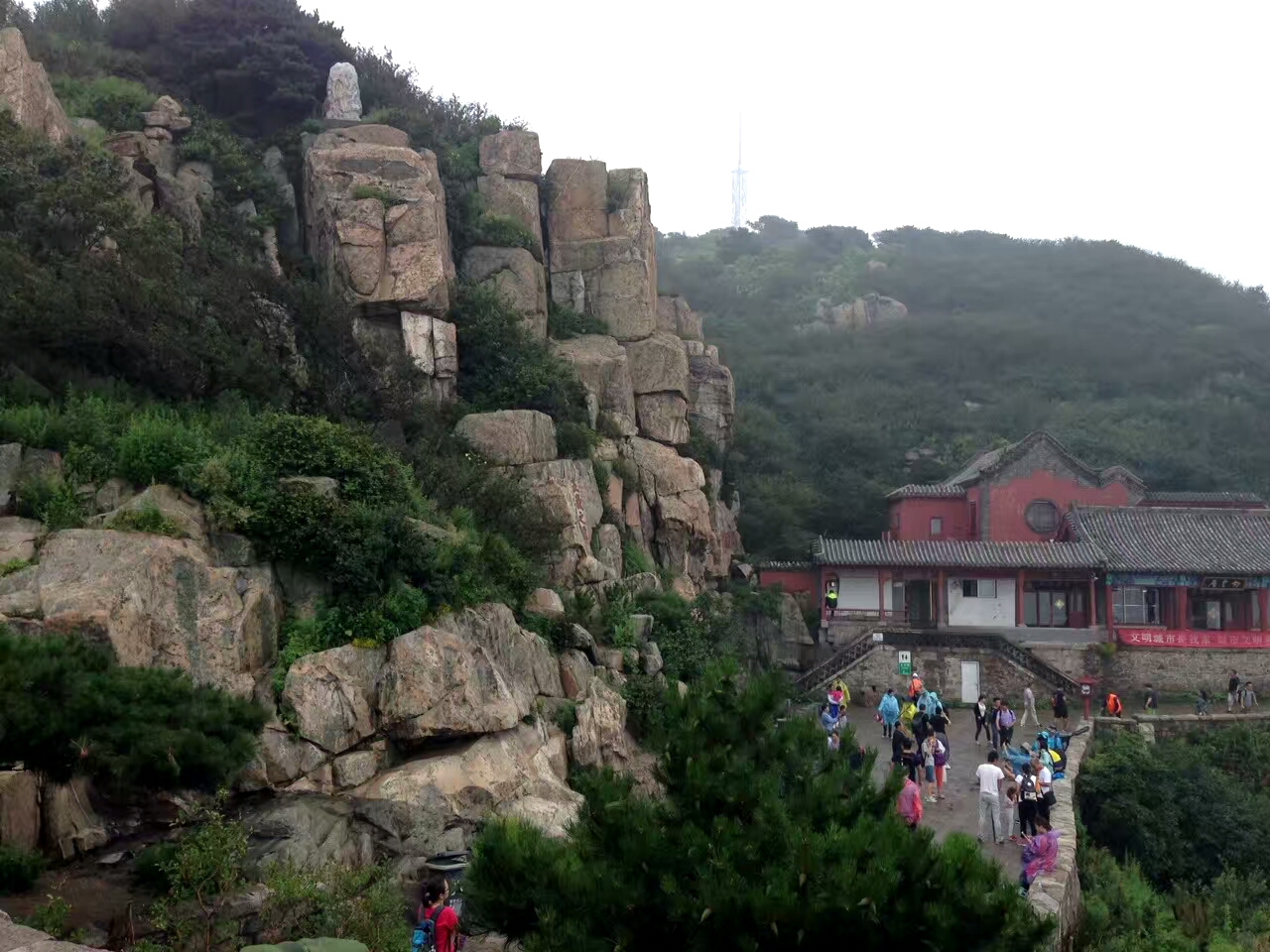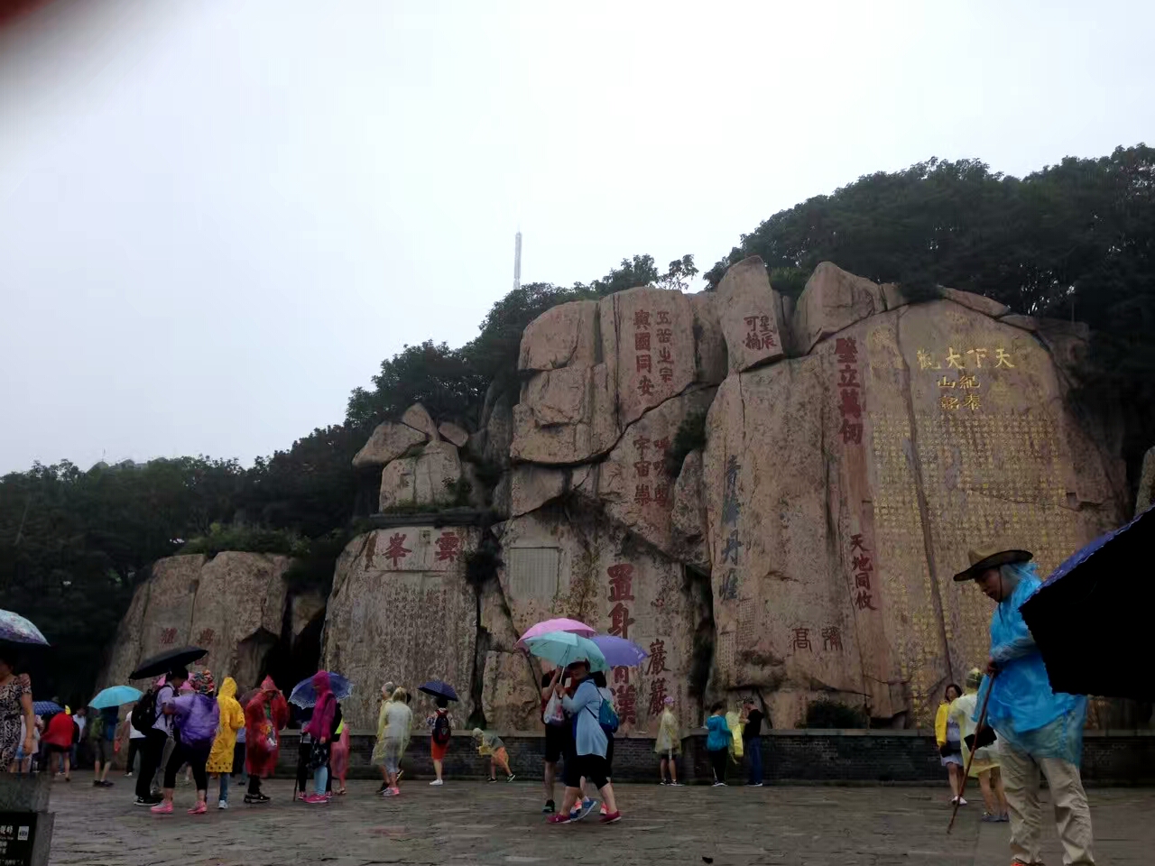 毫无疑问,登泰山的话,肯定是白天登山,比晚上登山,看到的景色要好的多啦。泰山,是我国的“五岳”之首,有“天下第一山”之美誉,是中国最美的、令人震撼的十大名山之一。三年前的一天上午,我们一帮朋友,在山下的天外村,买好票,坐班车到达中天门,然后拾台阶而上,花费了大约三小时左右的时间,到达了南天门,欣赏到沿途无数的摩崖石刻等历代皇帝封禅和文人墨客登泰山的遗迹及风景(拍了好些美片)。那天,我们快到南天门的时候,飘来一阵浓雾,过了许多时间才散去,很巧,抓拍到了一张南天门飘云雾的比较清晰的照片。当时我们在山上,还遇到了一阵急雨,它来得快,也去得快,故雨过天晴后,也没有领略到山上红霞朵朵,脚下云海碧波的美景…………。随后我们是坐索道下的泰山。