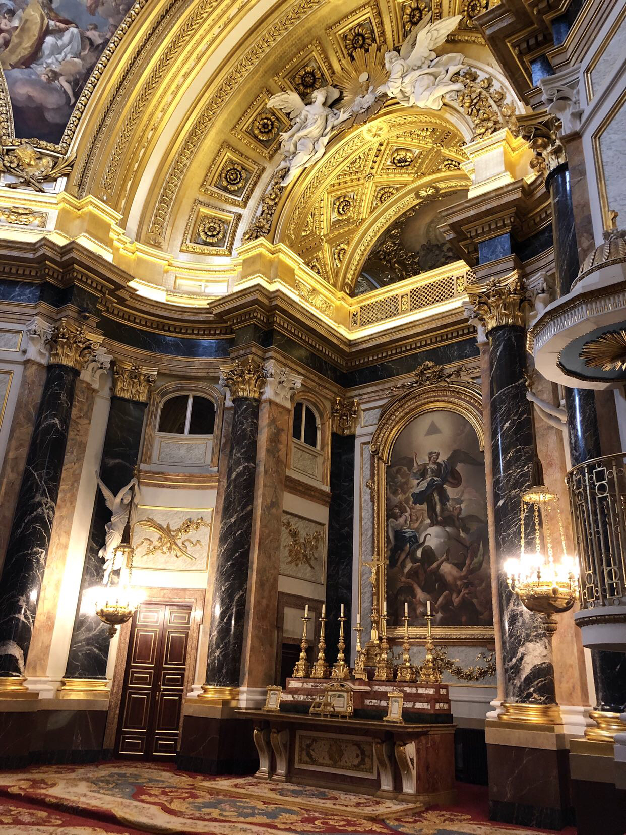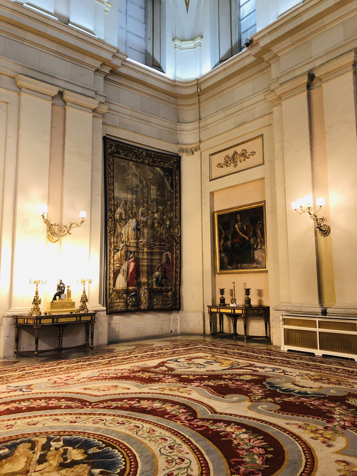 马德里皇宫是欧洲最大,最美丽的宫殿之一,非常值得去。宫殿内部装饰着西班牙大理石、桃花心木门和精美的壁画,在宫殿室内屋顶上,有Giaquinto和Tiepolo等著名艺术家的绘画作品。还可以参观“武器博物馆”,展示自13世纪以来西班牙国王使用的各种武器和弹药。 此外,还有一个展示药品储存柜,药瓶和王室处方药的房间。马德里皇宫是我参观过的最金碧辉煌,最奢华的皇宫。