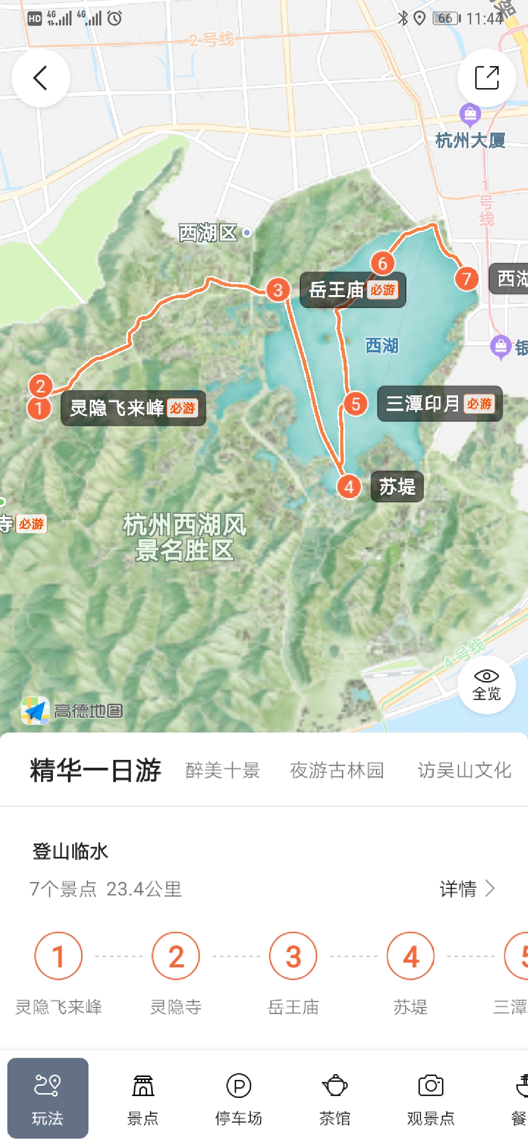 西湖最大的特点就是景多,所以玩法也特别多,不同的人可以玩出不同的感觉,从1天到3天,都能有不一样的游玩体验。具体的可以看看高德地图里的“杭州西湖一键智慧游”,里面有很多路线的推荐,从根据时间的1-3天路线,还有根据主题的茶文化路线、浪漫路线、骑行路线等等。