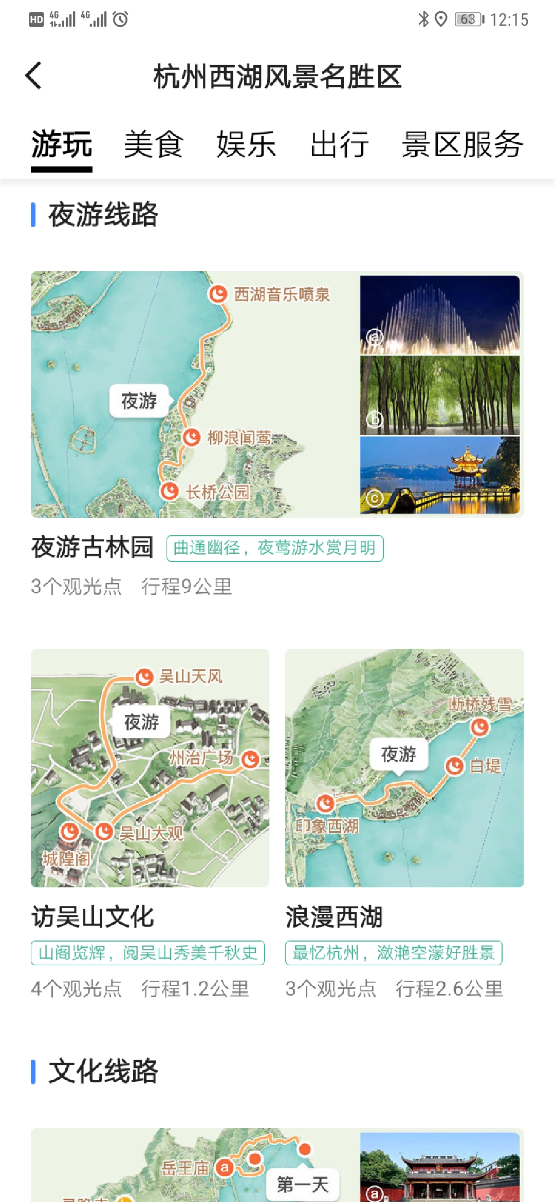 而且除了路线,还有当季最美景点推荐,比如春天推荐是的太子湾公园、灵峰探梅、白堤,可以根据当季特色对应选择景点和路线。