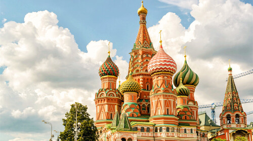 莫斯科的地标是红场,红场是俄罗斯最古老,也是最有名的广场,俄罗斯语的意思是美丽的广场。红场不大,不规则,用一块块长方形的黑色鹅卵石铺筑成的,毗连克里姆林宫相,克里姆林宫现在是普京办公的地方。红场南边是莫斯科最经典象征的圣瓦西里大教堂,红场北侧是俄罗斯国家历史博物馆,这里是俄罗斯的历史。