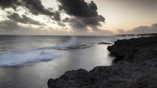 喷泉很常见,但是在汤加的塔布岛南岸却变得有些特别。闻名世界的“喷潮洞”造就了南太平洋独特的海上喷泉景观。塔布岛南岸绵延数千里的珊瑚礁长期被海水侵蚀,形成无数千奇百怪的孔洞,而且洞洞连天。当海水涨潮,海浪拍打海岸时,海水通过空洞直冲天际,水柱高达数十米,并且发出哨子一样的声响,再直泄如地面,水柱在阳光下此起彼伏,炫目耀眼,蔚然壮丽,好似海上喷泉。