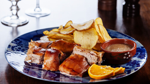 作为一个海岛国家,汤加不缺美食,香蕉、椰子、地瓜,各种热带水果以及龙虾、石斑鱼等海产品丰富,美味的海鲜应有尽有。焖大虾、椰汁拌生鱼、烤香蕉、蒸槟榔都是招待客人的名菜,但是最有特色的要数被称为“汤加国菜”的烤全猪。烤全猪是汤加最隆重的迎宾宴,经过柴火烤制的整只小猪,表皮焦脆,内里鲜嫩多汁,非常美味可口。当宾主落座之后,首先由主任用汤加语做祈祷,再由主人切下之后分给众人开始一起享用。