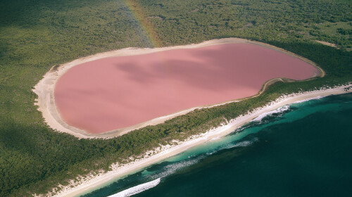 碧水不一定是蓝天白云的标配,还有可能是草莓奶昔。希利尔湖就是那少女般的粉红色,远看,如同一杯草莓奶昔,近看却又成了水汪汪的半透明色。Tips:希利尔湖位于澳大利亚西澳大利亚州南部勒谢什群岛的中岛(MiddleIsland)上。湖水所以呈现出粉色是由于水中的嗜烟藻类在繁殖过程中产生的大量β-胡萝卜素,因此,随着时间和湖内盐度的变化,湖水的颜色也会由浅绿到绯红不断变幻!