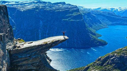 巨人之舌Trolltunga位于挪威Odda地区的Skjeggedal山,是一块“神奇”的岩石,名字来源于Troll和Tunga两个词语。Troll在挪威代表的四一种红色鼻头的小精灵,虽然面目有些诡异,却代表着独立和自由,tunga在挪威雨里则是舌头的意思。玩法:登上Trolltunga着实不容易,首先需要做缆车到达半山腰,再由台阶或者小道攀爬到岩石上,挪威徒步爱好者协会在附近建有小物,也可以稍作休息。