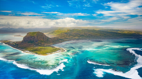 湛蓝的海水之下居然有一片银白色的“瀑布”?这个瀑布似乎就沉在海岛之下,大量银白色得水顺着悬崖直冲而下,落在大海的深渊之中,从上往下看就像一条藏在水下的瀑布,这绝对是写科幻小说的最好题材。Tips:奇景形成原因就是海底的沙子和淤泥顺着不停地流向地势较高的大陆架边缘,再顺着边缘坠入海底。说穿了海底瀑布就是一幅上帝利用错觉创造的3D视觉图。科普完啦,小编就来安利一下其实海底瀑布就位于毛里求斯西南端的岛屿。