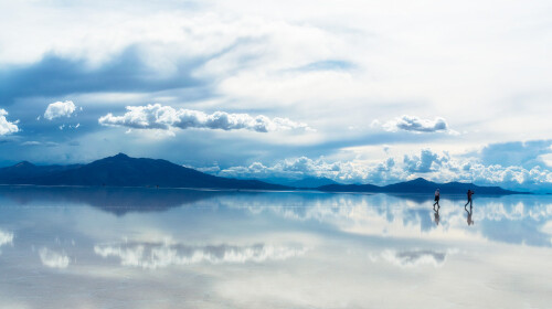把光线反射到太空,能做到这件事的应该只有玻利维亚的乌尤尼盐湖了。盐湖面积超过1万平方公里,浩浩汤汤,巨大的盐湖将光线反射到太空,被世人称为玻利维亚利天空之境。玩法:想要欣赏到镜面下的蓝天白云和星空闪电,每年的10月至2月的雨季最好。在天空之境拍摄照片是必不可少的;拍照之余还可以欣赏盐湖上错落有致的小盐包;或者用斧头切出一些大小不等的盐块做手工diy。