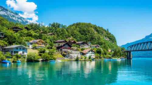 因特拉肯这个小镇由于地处图恩湖和布里恩茨湖之间,所以被称为因特拉肯(湖水之间)。这里既能泛舟湖上观光,也能乘高空缆车登高峰,一览少女峰。你可以来到小镇高处观赏小镇全貌,也可以坐在湖边观赏美景。伯尔尼整座城市建在一河谷里,地势参差,城市不大,花2个多小时就能将整个城市走完。走在大街上的每个角落,你都会看到大大小小的钟。瑞士人以严谨著称,时钟就是瑞士人的性格最好的体现。主道上的爱因斯坦故居也是必去的景点之一哦。