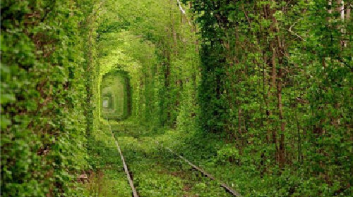 乌克兰科勒文的“爱之隧道”,这或许是世界上最浪漫的一条火车道,在天气温暖的月份,1公里长的铁道两旁树木形成一条童话般的绿色隧道。许多情侣来到此地许愿。真正了解这条隧道的人很少,听说它的人也不多,这也让它充满神秘色彩。