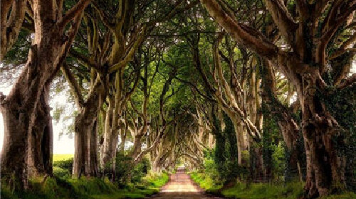 北爱尔兰安特里姆郡的布莱加夫路,座落于斯特拉诺库姆村附近,两旁的山毛榉超过100棵。这条树隧道被当地人称之为“暗黑树篱”,据说已经有大约300年历史。如今这里已成为北爱尔兰的著名景点。