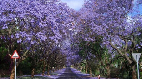 蓝花楹隧道位于比勒陀利亚,比勒陀利亚栽种着7万多棵蓝花楹,也被称之为“蓝花楹之城”。花儿朵朵开时,蓝花楹为这座美丽的城市画上一笔迷人的紫蓝色,让人流连忘返。