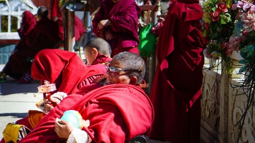 在佛学院最高的山峰上,有一个金碧辉煌的建筑,叫做坛城,是藏民转经祈福的地方。每日信众如潮水般涌上山头,他们个个手持转经筒,念着六字真言,围着坛城转圈,祈福平安!仓央嘉措在他的诗里写道:“那一月,我摇动所有的经筒,不为超度,只为触摸你的指尖;那一世,转山转水转佛塔,不为修来世,只为途中与你相见。”