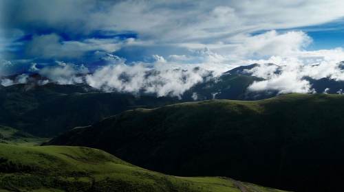 这里拥有绚丽多彩的自然风光,古朴谆厚的民风民俗,巍峨连绵的雪山群峰,星罗棋布的溪水河流,神秘传奇的藏民族文化。没错!这就是金马草原,成群的牦牛点缀着被群山环抱的草原,就像游动的音符,带给草原一片生机。山脚下藏人的帐篷里炊烟袅袅,牦牛悠闲地走来走去,连牧犬也懒洋洋地坐着,一切似乎都放慢了脚步,广袤的金马草原散发着一种宁静、洁净的美。