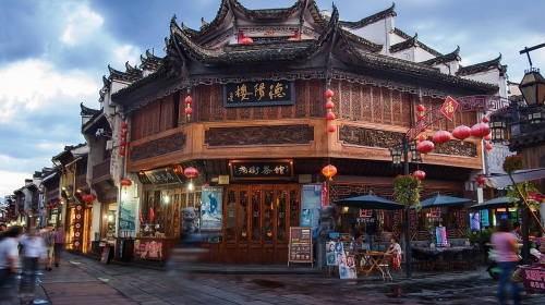虽然屯溪老街严格意义上来说并不算古镇,但是老街上清一色的徽派建筑却满满都是古韵。宋朝时,外出的徽商模仿宋城的建筑风格在家乡兴建了这条老街,元、明、清时代,老街上的店铺不断延生,粉墙黛瓦、砖雕木刻和高高的马头墙构成了精美的徽派建筑群。宽窄巷子纵横交错,老牌店铺鳞次栉比,走进去一定会有穿越之感。