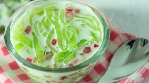 东南亚国家因为天气炎热,所以冰品向来都很受欢迎。煎蕊就是非常畅销的一种冰食,跟沙爹一样,在大马的大街小巷都能找到。煎蕊,也叫晶露,里面除了会放冰,还有一种由Pandan叶汁制成的绿色细条,吃起来会有浓浓的青草味,最后还会在上面淋上一层特制的椰浆和黑糖,这样就是一道完整的煎蕊啦。马来最有名的煎蕊据说是开在槟城景贵街的潮州煎蕊,想吃还要排队的说。
