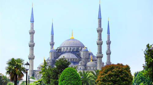 纪念碑谷游戏世界里除了有着胖圆圆的洋葱头,建筑物本身还呈现出层层叠叠的样子,人们能够从中捕捉到蓝色清真寺的风貌。盛名远扬的蓝色清真寺静静矗立在伊斯坦布尔,主殿上有着层次分明、大小不一的大圆顶,后院则是大小和形状都一样的小圆顶。正是这些大大小小、高高低低的圆顶建构出层层叠叠的空间感,形态壮丽,诉说着神秘。