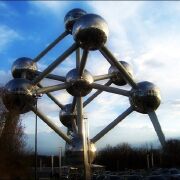 地图布鲁塞尔原子塔位于布鲁塞尔市西北郊易明多市立公园内、是比利时工程师安德鲁·瓦特凯恩(AndréWaterkeyn)于1958年为布鲁塞尔万国博览会设计的,现在已经成为有代表性的比利时地标建筑。标新立异结构这座原子塔采用了放大了1650亿倍的α铁的正方体晶体结构,由9个直径18米的铝质大圆球组成,每个圆球代表一个原子,也代表当年比利时的9个省,各球之间由空心钢管连接,钢管每根长约29米。9个圆球加上钢架结构总重量为2200吨,高的一个球体离地面102米。每个球表面都是用5800块三角弧形铝片焊接而成。在阳光照耀下,这座气势雄伟的建筑银光闪烁,称得上是一件标新立异的科学艺术品。顶球远眺目前原子塔有4个球对公众开放,其他球体用于研究工作或租赁。从地面圆形接待大厅可搭乘升降式电梯直达高的顶球。这部电梯速度高达5米/秒,是欧洲运行速度快的电梯。顶球供游客观赏风景,四周为一圈固定的钢化有机玻璃窗,并设有多架望远镜。在顶球远眺,整个布鲁塞尔市远近建筑一览无遗:布鲁塞尔市政厅、圣心国家圣殿、微缩欧洲等建筑都尽收眼底。参观导览从顶球下来,沿球间斜行的金属管道可依次下到其它各球。这些球体内分门别类地陈列着太阳能、原子能、航天技术、天文类的展品,还有比利时气象事业发展史的图表。在六层的观景台,你可以从一个非常独特的角度观赏原子塔和其中的5个球,非常有意思。美味餐厅顶球的上半层设有观景餐厅,窗外的风景十分迷人。餐厅正午时间只对团队开放,但你可以在此享用晚餐,建议提前预约,在离地面100米的高空就餐是难忘的经历。原子球的底层设有餐吧,如果累了可以来这里休息,补充能量。位于同层的纪念品商店同样不可错过,这里的各种原创马克杯、耳环、钢笔都十分别出心裁,可以酌情选购。每当夜幕降临,每个圆球外面的9圈灯泡交替追逐发光,奇妙的灯光点缀着布鲁塞尔的夜景,很值得一观哦。