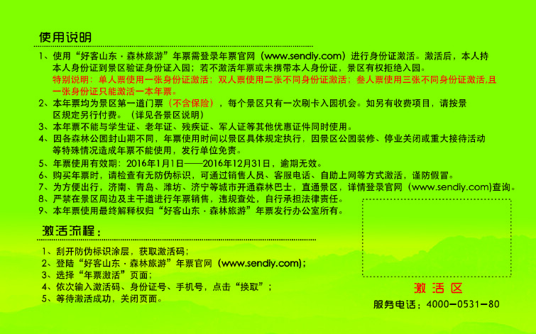 好客山东森林旅游年票(电子票)