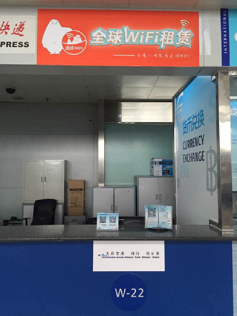 6.成都双流机场 取还货地址:T1航站楼国际出发厅5号门 进门前行大概200米 左手边货币兑换旁W22号柜台。