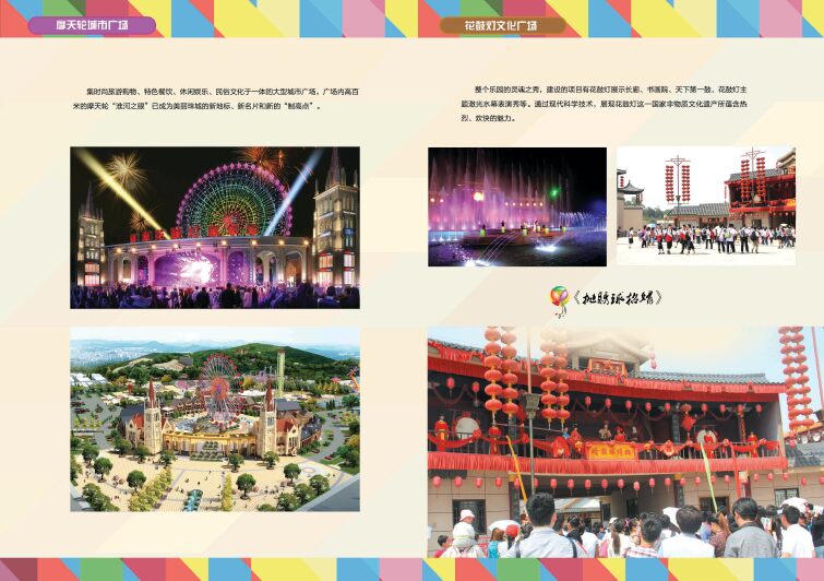 同时摩天轮广场建设项目还包含了欧陆风情的万国风情街、大型停车场等。它是集时尚旅游购物、特色餐饮、休闲娱乐、民俗文化于一体的大型城市广场。