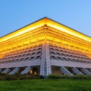 博物馆在市政府前面,有时晚上在两栋建筑之间的广场上,会有音乐喷泉的表演。