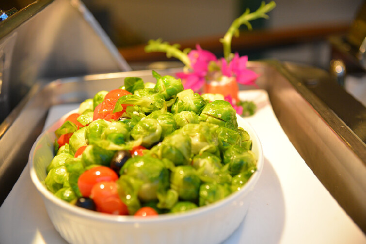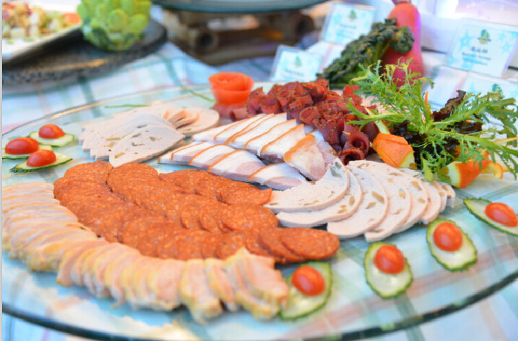 【SALAD】(五种西式沙拉,四款中式沙拉每天更换品种) 清沙拉吧(含进口生菜等七种蔬菜)、三种汁(千岛,油醋,法式)、六款小料、希腊西芹蘑菇沙拉、泰式牛肉沙拉、菠萝鲜虾沙拉、德国土豆沙拉、酸椰菜鸡丝沙拉、日式寿司卷(由于季节变换等因素,菜品以当天店内实际供应为准)
