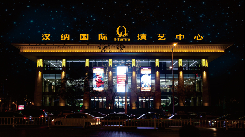 汉纳国际演艺中心总投资1.2亿元,总占地面积20000余平方米,建筑面积6500平方米,包括大剧院、艺术培训中心、影视制作中心、演员楼及汉纳群众文化广场五部分。
