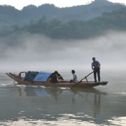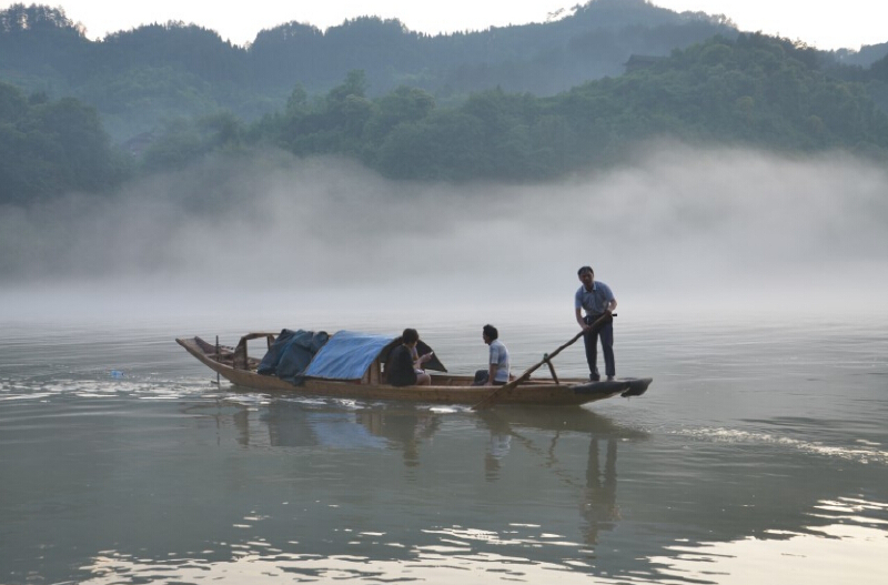 酉水船工体验段,包括烧火岩、狗拉岩等景点,游客体验摇橹、拉纤情趣;