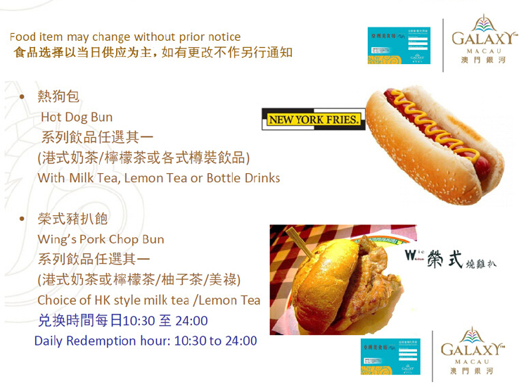 【费用说明】:澳门银河运财套餐换领券(美食餐券) 一张,网站价格已包含服务费!