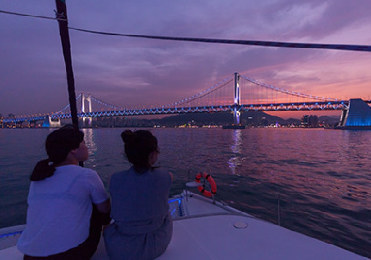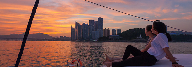 在海上观赏美丽的釜山,一起分享美好、快乐的时间。