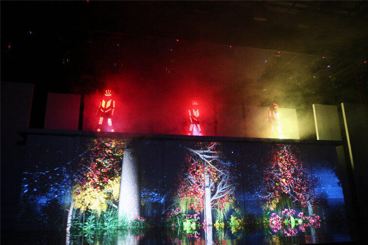 照明, sonic tier声波层立体音响系统设置完成,通过Media-Façade影像和全息图影像出现