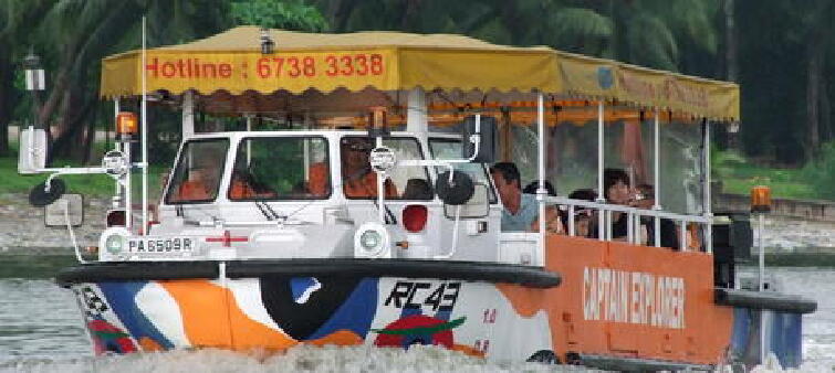 搭乘水陆两栖鸭子车,在海面和陆地两个角度游览新加坡风光