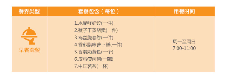 美心MX早餐详情如下:(只限 7:00-11:00使用)