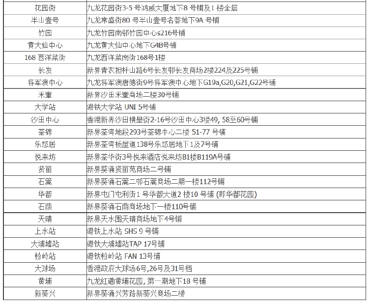 可以使用餐厅分店详情如下: