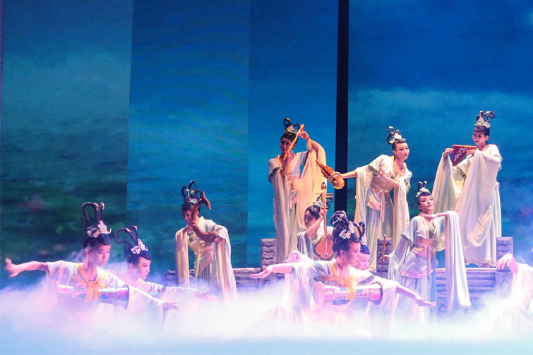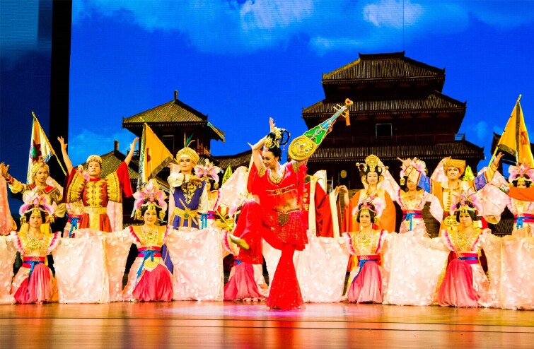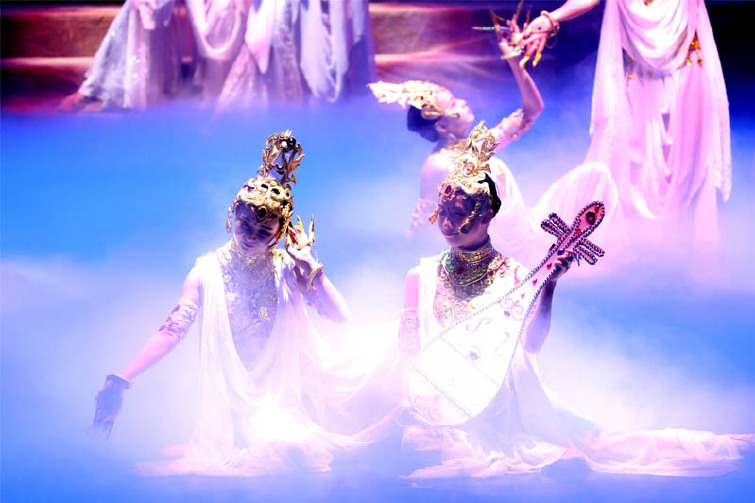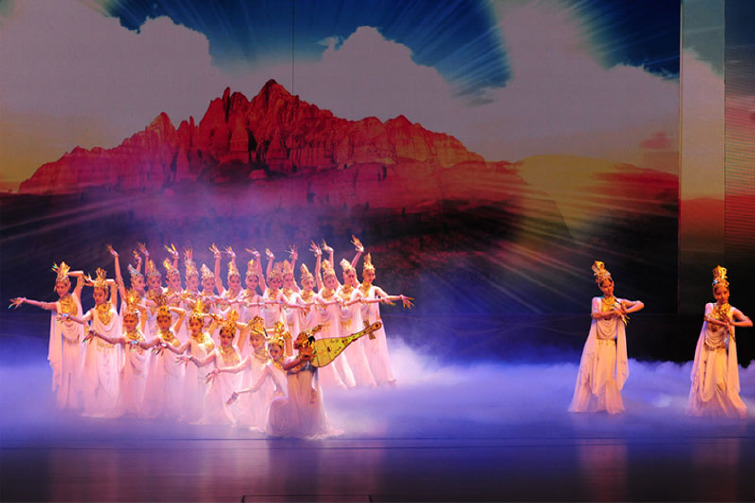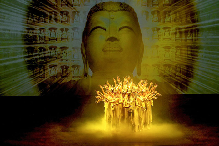它以别具一格的艺术风格,将瑰丽多彩的敦煌壁画搬上舞台,艺术形象地再现了敦煌文化的博大精深和古丝绸之路繁荣昌盛的辉煌景象。