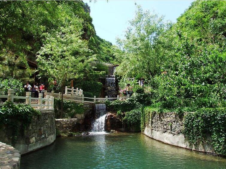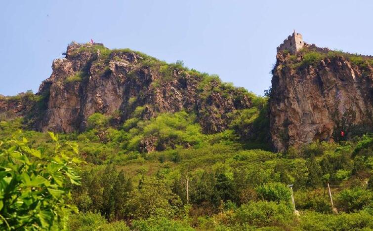 景区内山峰陡峭,泉水淙淙,果林成荫,花草弥坡,空气清新。阳春,山花烂漫,花香溢人;盛夏,林荫欲滴,满目清翠;金秋,硕果累累,红叶满山;寒冬,银装素裹,冰川万丈。景区地处明代长城建关筑堡的山谷之中,山谷两侧,峰峦起伏,怪石峥嵘、历尽苍桑而古貌依然的万里长城,巨龙欲飞,直插云霄,雄城险关,甚为壮观。明代摩崖石刻也给古关要塞增添了几分威严。而天然的连云洞和图腾阁,鬼斧神工般高深莫测,趣味无穷。奔腾的山泉,从山顶飞泻而下,形成五十余米落差的瀑布,甚有银河落九天之美,观后令人心旷神怡。