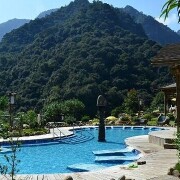 乐峰赤壁温泉度假村设有温泉露天冲浪、温泉泡池、温泉滑道、儿童乐园、特色小吃走廊、接待中心大楼等综合温泉设施。