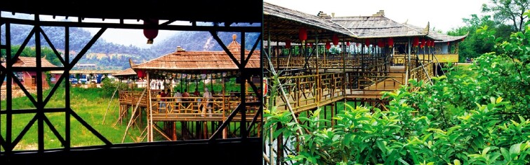 景区内的九龙湾山庄是家大型农家山庄,独具特色的竹制结构,坐落在风景优美的景区内部,能同时容纳500人就餐。餐厅以乡村美食为主,为客人带来绿色健康味道鲜美的美食,特色餐是松林鸡,瘦身鱼,还推出多款本地乡村风味的小吃。