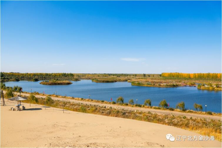 辽宁北方金沙滩生态旅游开发沙漠公园景区位于位于内蒙古甘旗卡与辽宁康平交界处,总占地7100亩,其中沙漠占地3100亩,林地占地4000亩,2017年获得国家AAA级旅游景区授牌,是辽蒙两地联手打造的原生态景区,被誉为“北方沙湖”。这里不仅有沙漠、湖泊、清泉、果树、花草,还有数不尽的飞鸟,是一幅世外桃源的原生态画卷,沙漠与绿洲紧密相连,创造了“沙不进、绿不退、人不迁”的奇迹。这里还有契丹族的发源地,景区及周边尚有古迹。沙水相连,群鸟翱跹,既有唐代诗人王维“大漠孤烟直,长河落日圆”的粗旷豪放,又有卢汝弼“随阳沙漠雁,烟暖又思归”的美妙情趣,是难得一见的梦幻般景致。