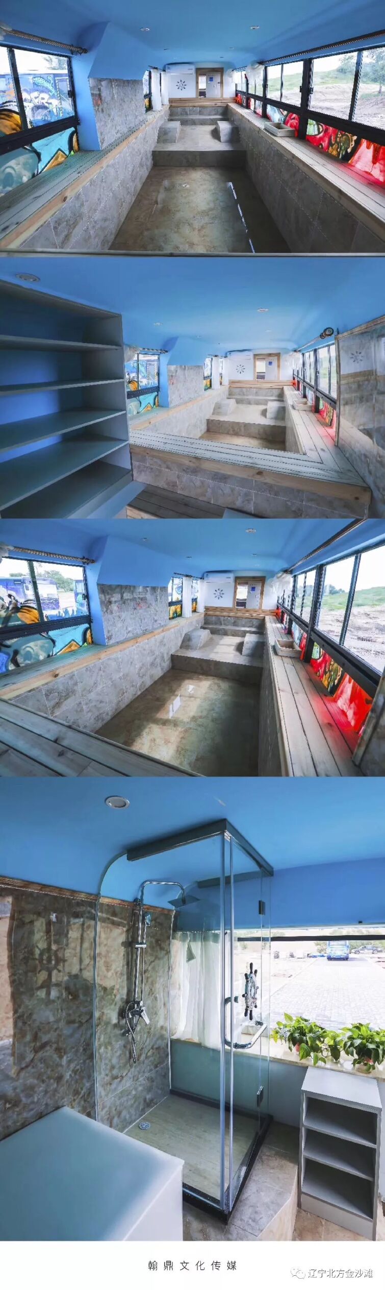 房车内部的环境同样也不失格调,整个布局简约气派,豪华宽敞,配备了无线网、电视、空调暖风机、沙发,冰箱等设施,完全就是一栋融入在大自然中的移动公寓。