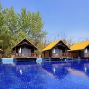 温泉出口水温高达 80℃,其储量、面积、水温居东北地区之首。经国家温泉矿水质检测中心检测:该泉属特级品质,含偏硅酸、锶、锂、氟等多种微量元素。 温泉坐落在小镇天然森林山谷中,由水疗区、汗蒸区、游泳馆、儿童戏水区、丽水御泉区及 108 个室内、外温泉泡池组成,泡池分布在三脊四沟中,可同时容纳四千人共浴,日接待能力达万人以上。 (其中人参浴、甘草浴、藏药浴、首乌浴、芦荟浴、苹果醋浴、鸡血藤浴在溶洞温泉区域)。泡池水深 40-60CM 不等,小的泡池面积有 6 平米左右,大的泡池50 平米左右。