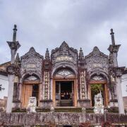 地图寸氏宗祠又称寸家祠堂,位于云南省腾冲县和顺古镇景区,仳邻大石巷脚总大门东侧,占地2222平方米,坐南向北,依山面坝,逐级而起,错落有序,宇辉宏。以建祠早,大门“洋”、标杆“牛”,月台阔、匾联丰富而称雄和顺。寸氏宗祠是和顺古镇景区的标志性建筑,是腾冲寸氏宗族的象征,也是和顺八大宗祠历史久远的一家,也是和顺八大宗祠中修建早的一家。寸氏宗祠的大门显得与众不同,别家宗祠大门均为传统的飞檐斗拱、瓦木结构,唯独寸氏宗祠的大门从使用的材料、外形都是标新立异,典型的南亚风格,洋气十足。形成了中外合璧的经典之作。岁月沧桑,历经70多个春秋,它成了魅力和顺侨乡一张名片。其精湛的雕刻技艺和不朽的艺术价值,充分体现了古代汉族劳动人民的卓越才能和和艺术创造力。大门外上月台的左右两边分别立有一根高达两丈多的石柱标杆,即古代的旗杆,相较其他宗祠的标杆,迥然有异,特别醒目的是别家的标杆只有一个方斗,而寸氏宗祠的标杆上有两层方斗。这里很有考究:在等级森严的封建时代,是有严格规定不能越矩,由于在明清两朝,寸家不仅先后获取功名的有223个秀才文武生,4个举人,并于光绪乙未年还出了寸开泰一个进士,故按律允许悬两斗,其他宗祠则无此殊荣,寸氏宗祠的双斗标杆就成了“牛”的。大门外设有上下两层月台,全都采用石栏护围、石板镶铺,尤其是紧靠乡前大道的下月台为一半圆形,面积广达数百平方米,特别宽畅,在八家宗祠中首屈一指,堪称“阔”。忆及儿时在和顺中心小学上学,每逢开校会,全体师生集于下月台,仅占其一翼,可见其大。