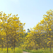 地图金色春谷是一个集花卉观赏、休闲娱乐为一体的综合性景区。景区内种植了大量花卉,包括黄花风铃木、虞美人、月季花、木绣球等,形成了丰富多彩的花卉景观。其中,黄花风铃木是园区的特色之一,每当春风拂过,金黄色的花朵随风摇曳,宛如无数小精灵在枝头跳舞,营造出温暖而明亮的氛围。